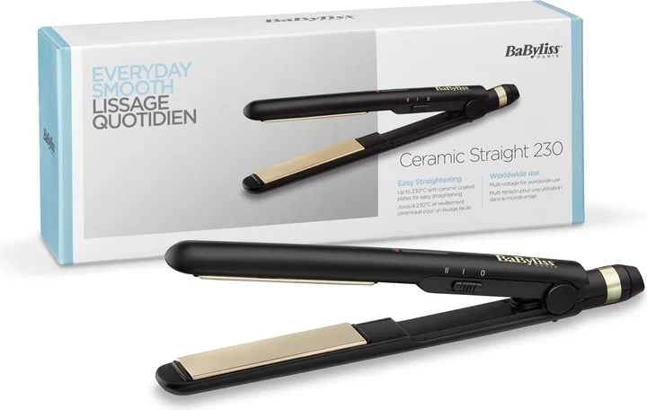 Suitable for Any Hair TypeThis straightener is designed for all hair types, from fine to thick, including naturally curly or treated hair. With ceramic-coated plates and up to 230°C heat, it delivers smooth styling results safely. “BaByliss Ceramic Straight 230 – Everyday Smooth styling made easy. With ceramic-coated plates and high heat performance, this straightener glides effortlessly through the hair, giving you sleek, shiny results every day. Compact, reliable, and perfect for worldwide use.” Benefits