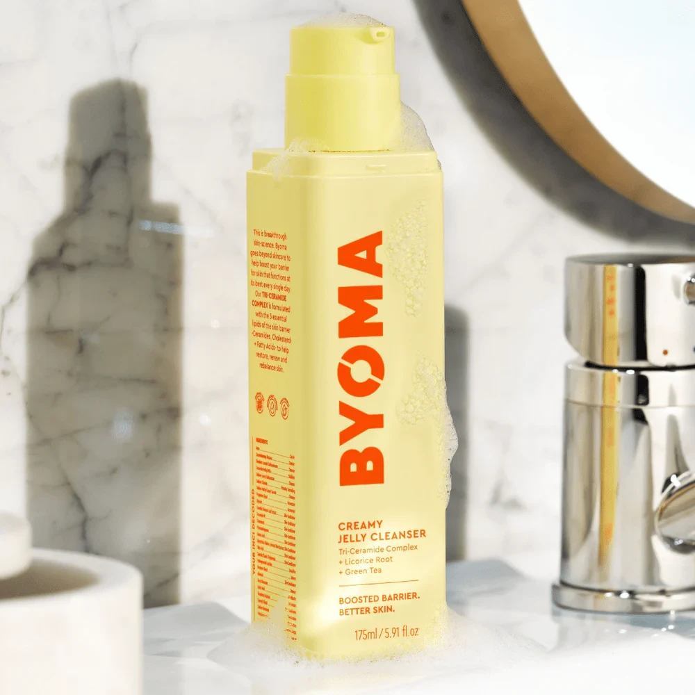 Behold your daily skin reset—BYOMA’s ultra-hydrating Creamy Jelly Cleanser transforms from a bouncy, pH-balanced gel into a luxuriously creamy lather upon contact with warm water. Powered by a barrier-boosting Tri-Ceramide Complex alongside brightening licorice root and antioxidant rich green tea, it refreshes without stripping, delivering soft, supple skin that’s prepped and protected. Benefits