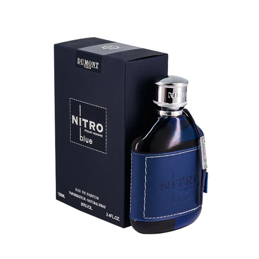 Dumont Nitro Blu Eau de Parfum is a refreshing and modern fragrance for men who embrace adventure and style. With its vibrant burst of citrus, marine accords, and woody undertones, this scent captures the essence of confidence and freshness. Perfect for daily wear, it leaves a clean, lasting impression. Fragrance Ingredients (Olfactory Notes): While the exact formulation is proprietary, the fragrance typically includes: Top Notes: Bergamot, Lemon, Grapefruit, Aquatic Notes Heart Notes: Lavender, Geranium, Marine Accord Base Notes: Amber, Musk, Sandalwood, Vetiver Persistence, Odor, and Fragrance Concentration: Concentration: Eau de Parfum (EDP). offers a higher concentration than Eau de Toilette Sillage (Trail): Moderate Longevity: 5–7 hours on average Odor Profile: Fresh, aquatic, and slightly woody. crisp and masculine with a clean finish Method of Use: Spray on clean, dry skin, focusing on pulse points like the neck, wrists, and behind the ears. For a longer-lasting effect, apply after moisturizing your skin. Avoid over-spraying to maintain balance and elegance. Warnings and Contraindications: For external use only. Avoid contact with eyes, mouth, or broken skin. Flammable until dry. keep away from flames or heat sources. If irritation or allergic reaction occurs, discontinue use immediately. Not suitable for people with fragrance sensitivities or allergies to alcohol-based products. Store in a cool, dry place away from direct sunlight. |
