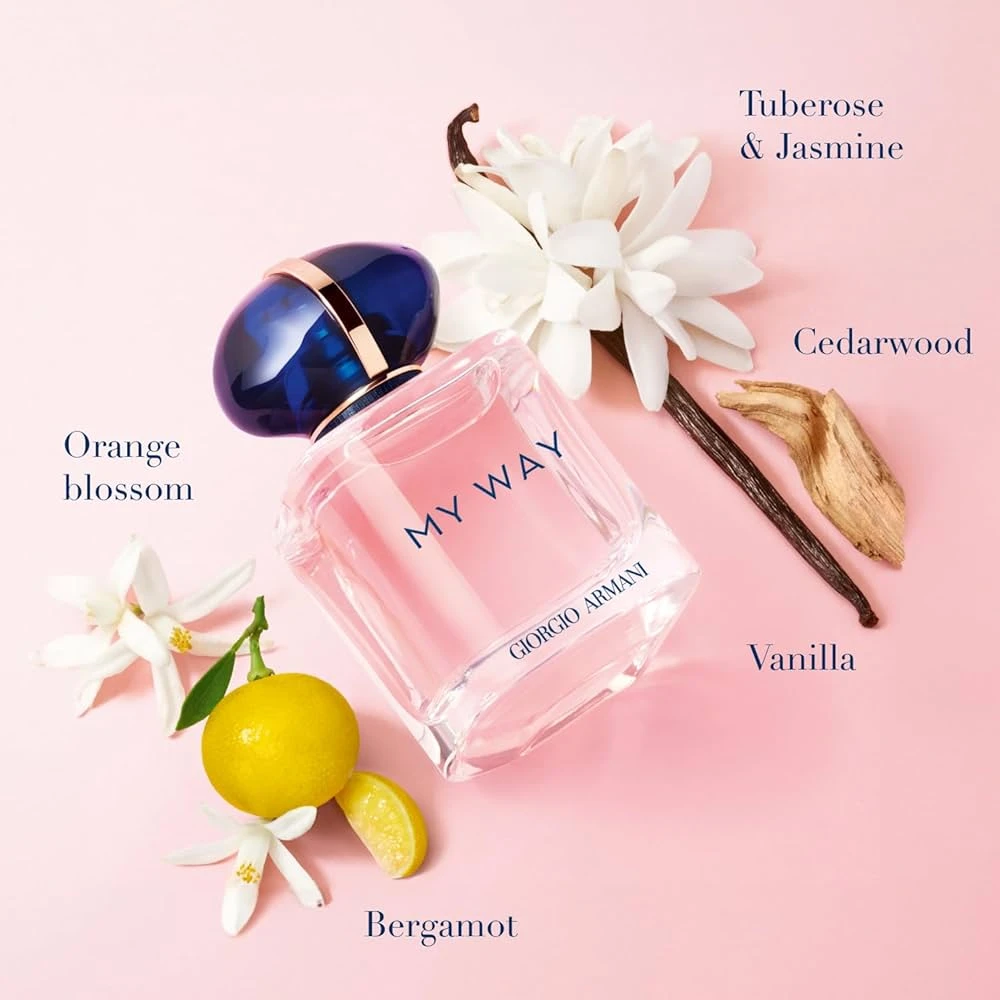 My Way Eau de Parfum by Giorgio Armani is a bright and modern floral fragrance that invites women to explore the world and define their own path. Crafted with consciously sourced ingredients from around the globe, this scent blends radiant white florals with warm woody and musky undertones. It's a celebration of curiosity, discovery, and authentic connection — the perfect scent for the woman who lives life her way. Key Features:
