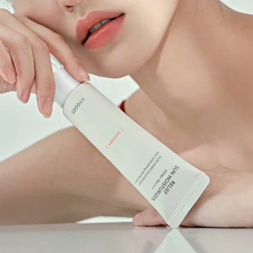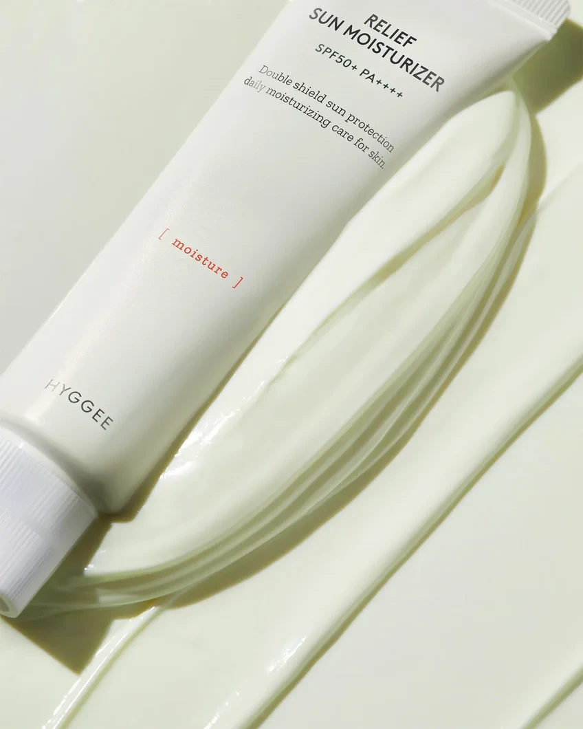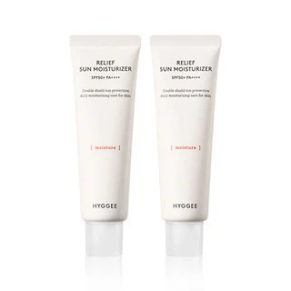 This sun moisturizer is suitable for all skin types, especially dry and sensitive skin. Its formula combines sun protection with moisturizing care for daily use. Experience double benefits with Hyggee Relief Sun Moisturizer SPF50+ PA++++. This innovative sunscreen not only provides broad-spectrum UVA & UVB protection but also deeply moisturizes the skin for a healthy, glowing complexion. With a soft lotion texture, it absorbs quickly, leaving the skin fresh, hydrated, and perfectly shielded from harmful sun rays. Benefits