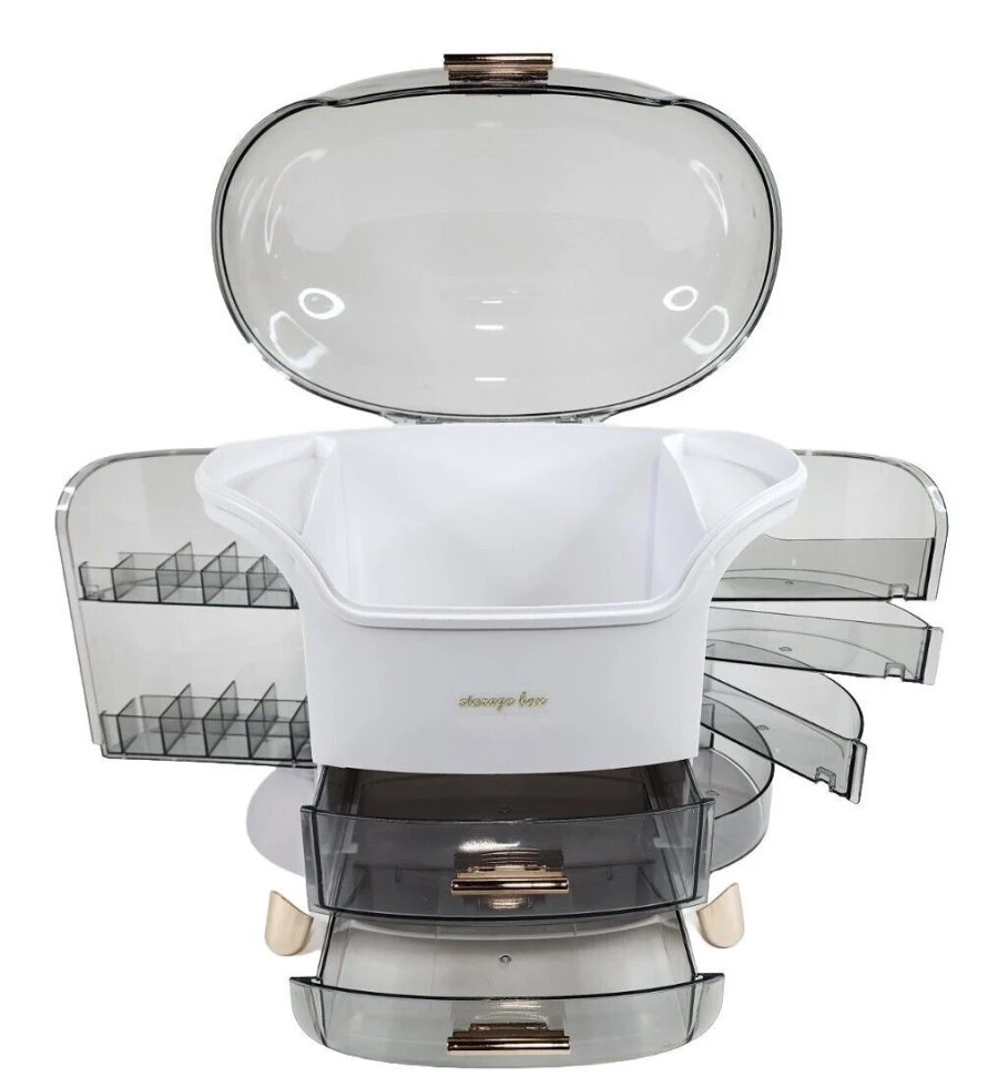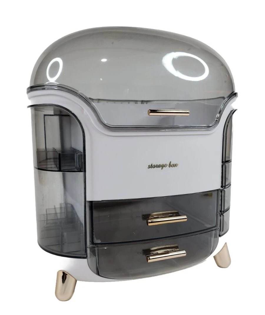 Meet your new beauty essential – the Luxury Dustproof Makeup Storage Box, designed to keep your skincare and cosmetics organized, clean, and beautifully displayed. With its sleek curves, clear top lid, and modern gold-accented handles, this piece brings both function and elegance to your vanity or bathroom counter. Say goodbye to clutter and hello to luxury organization. Product Features: