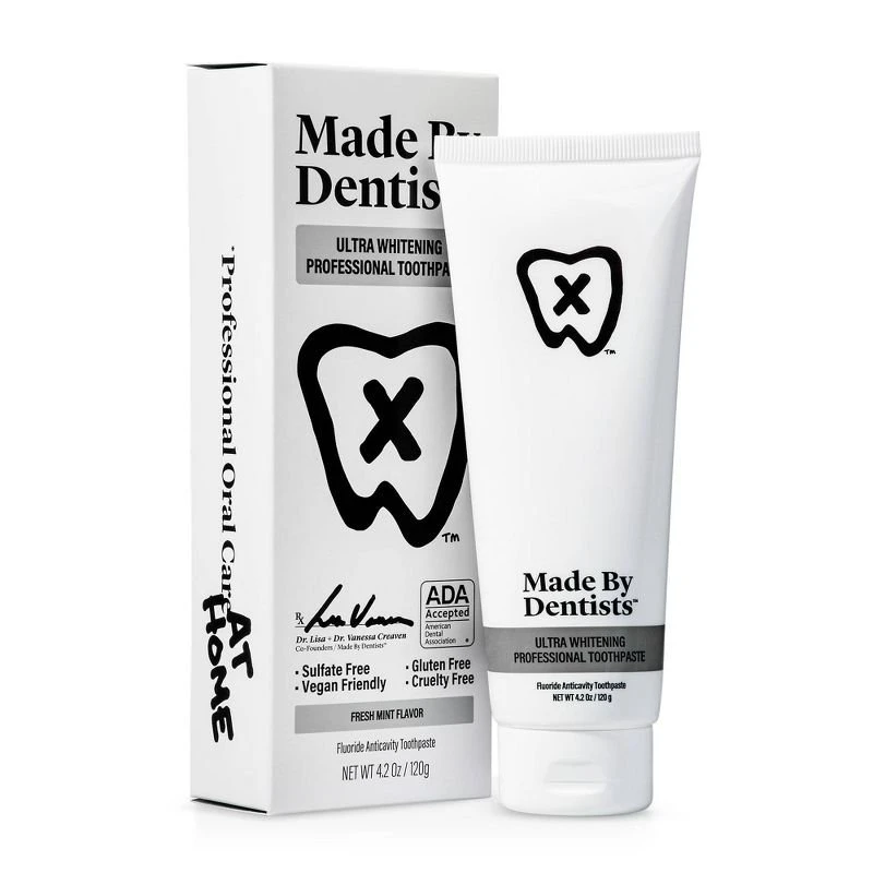 Achieve a dentist-level clean from the comfort of your home with Made By Dentists™ Ultra Whitening Toothpaste. Formulated by real dental professionals, this powerful toothpaste delivers effective whitening without harsh ingredients. With a refreshing mint flavor and fluoride protection, it helps prevent cavities while revealing a brighter, healthier smile. Key Benefits: