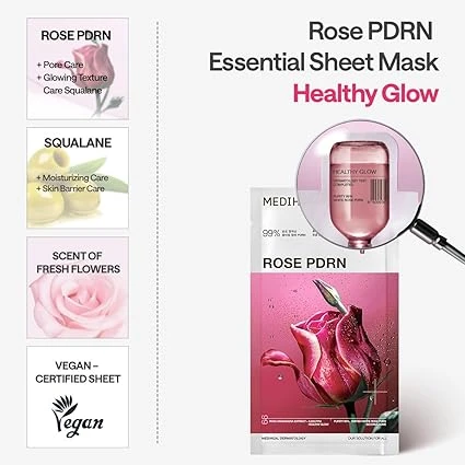 Suitable for Any Skin TypeYes, this mask is suitable for all skin types, including sensitive and mature skin. Revitalize and illuminate your skin with the Mediheal Rose PDRN Mask. Enriched with Rosa Damascena Extract (5,000 ppm) and 99% pure White Rose PDRN, this luxurious mask helps restore radiance, deeply hydrate, and improve skin elasticity. Its lightweight bio-cellulose sheet adheres perfectly to deliver active ingredients directly to the skin, leaving you with a healthy, glowing complexion after just one use. Benefits