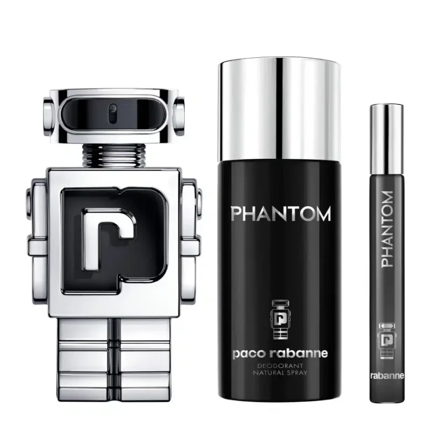 Step into the future of fragrance with Phantom by Rabanne – a bold, futuristic scent designed for the modern man. This eye-catching gift set includes the signature robot-shaped Eau de Toilette, a travel spray, and a deodorant spray, all presented in a sleek, metallic gift box. Phantom is more than a fragrance – it's a statement of confidence, energy, and individuality. Set Includes:
