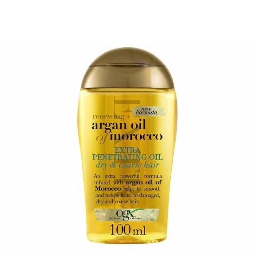 Deeply nourish and renew dry, coarse, or damaged hair with OGX’s Extra Penetrating Argan Oil of Morocco. This rich, yet lightweight serum is infused with cold-pressed Moroccan argan oil and water-based silk proteins, allowing it to penetrate deep into the hair shaft to repair and soften while boosting shine and elasticity. Ideal for medium to coarse textures, it revitalizes your hair, leaving behind touchably soft, silky-smooth strands with radiant shine, all in a delightful citrus-floral-woody scent. This formula is paraben-free and sulfate-free, ensuring a gentle yet effective treatment. Key Benefits: