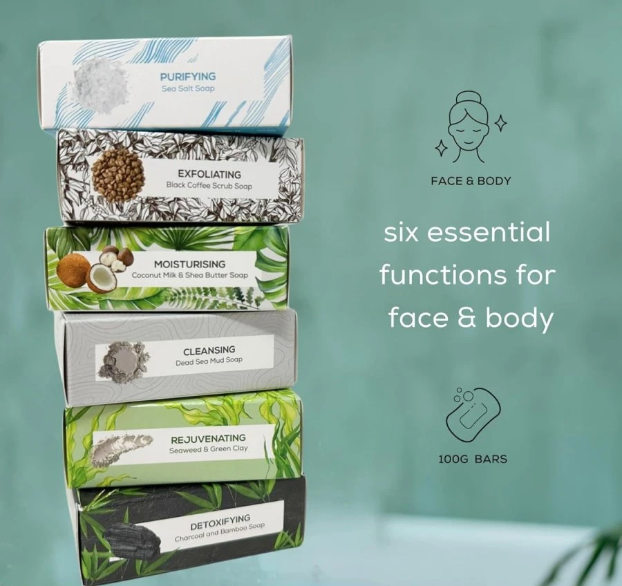 Experience a full spectrum of skincare benefits with the Revital Soap Collection Set. Featuring six premium handcrafted soaps, each bar is designed to target specific skin needs—whether you're cleansing, moisturizing, detoxifying, or exfoliating. Infused with natural ingredients like coconut oil, shea butter, dead sea mud, charcoal, bamboo, and black coffee scrub, this set is your daily escape into nature's healing touch. Beautifully boxed and perfect for personal use or gifting. Key Benefits: