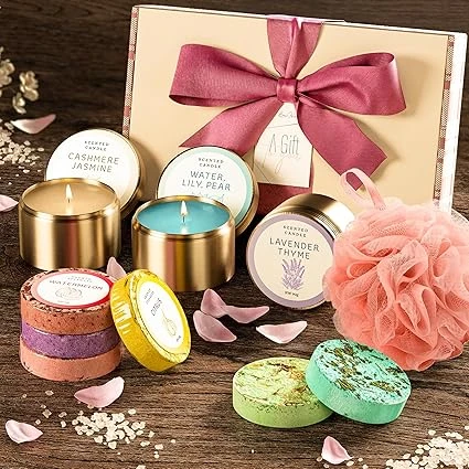 Suitable for All Skin TypesThe shower steamers are designed for all skin types, as they are used externally in the shower environment without direct contact with sensitive areas of the skin. Transform your daily routine into a spa-like retreat with the Shower Steamers & Scented Candles Gift Set. Infused with refreshing fragrances and crafted to deliver a calming atmosphere, this set elevates your shower into a relaxing, sensory escape. Whether you’re winding down after a long day or creating a soothing environment, this set is the perfect companion for relaxation and stress relief. Benefits