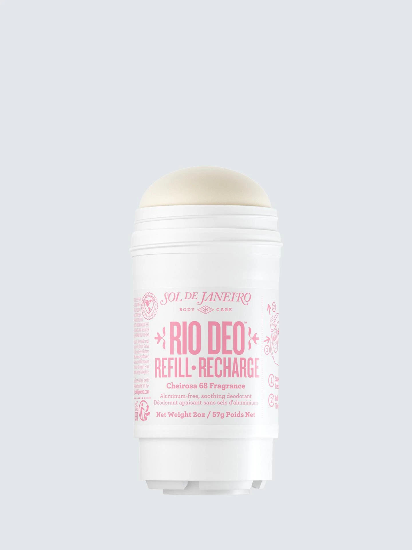 Stay fresh and confident all day with the Sol de Janeiro Rio Deo Aluminum-Free Deodorant Refill. Infused with the tropical and addictive scent of Brazilian Jasmine & Pink Dragonfruit, this deodorant neutralizes odor while caring for your delicate underarm skin. Its creamy formula glides on smoothly, leaving no residue and giving you a touch of irresistible fragrance inspired by Rio’s vibrant energy. Key Benefits Provides long-lasting odor protection without aluminum. Smooth, creamy texture that glides easily onto skin. Infused with Brazilian Jasmine & Pink Dragonfruit scent for a fruity-floral aroma. Gentle on sensitive underarm skin. Free from baking soda, aluminum, and harsh irritants. Comes as a refill, eco-friendly and sustainable. Suitable for Any Skin Type Yes, it is suitable for all skin types, including sensitive skin, because it is aluminum-free and designed to be gentle while still effective. Suitable Area of Use Specifically designed for underarms. How to Use Insert the refill into your Rio Deo Refillable Case. Apply directly to clean, dry underarms. Reapply during the day if needed for extra freshness. Warnings & Precautions For external use only. Do not apply to broken or irritated skin. Discontinue use if rash or irritation occurs. Keep out of reach of children. Store in a cool, dry place away from direct sunlight. |