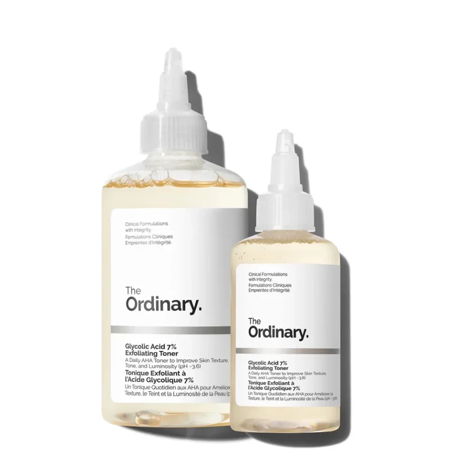 Experience smoother, clearer, and more radiant skin with The Ordinary Glycolic Acid 7% Toning Solution – now in a convenient twin set. This exfoliating toner is powered by glycolic acid to gently remove dead skin cells, unclog pores, and improve overall skin texture. The set includes a full-size 240ml bottle and a travel-friendly 100ml bottle, perfect for maintaining your skincare routine wherever you go. Set Includes: 1 240ml Glycolic Acid 7% Toning Solution 1 100ml Glycolic Acid 7% Toning Solution Benefits: