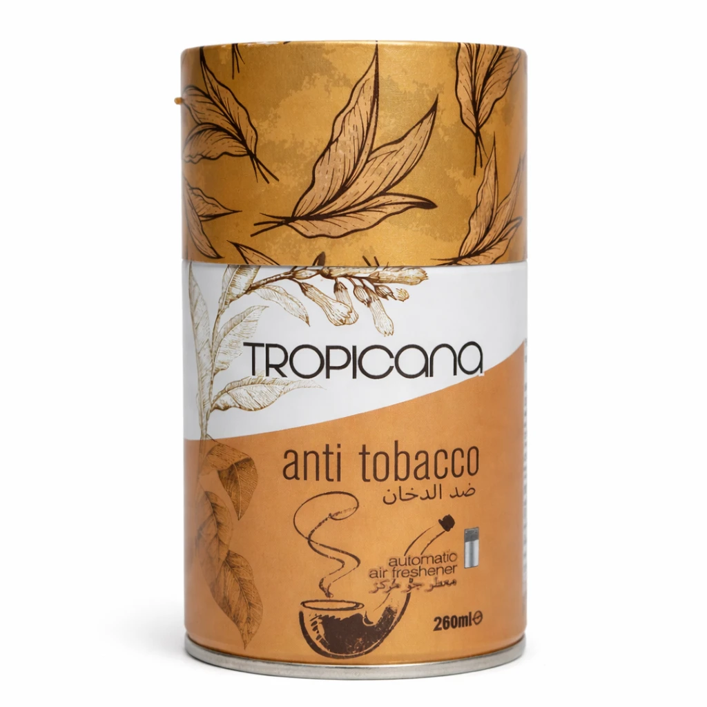 Tropicana Anti Tobacco Automatic Air Freshener is specially formulated to neutralize and eliminate stubborn tobacco odors from indoor spaces. Designed for use with automatic spray dispensers, it releases a fresh, clean fragrance at regular intervals, helping keep your environment pleasant, refreshed, and odor-free throughout the day. Key Benefits Effectively neutralizes tobacco and smoke odors Provides continuous freshness with automatic dispensers Long-lasting fragrance performance Helps improve indoor air quality Easy to install and replace Areas of Use Living rooms Offices Smoking areas Cars Public spaces How to Use Insert the can into a compatible automatic air freshener dispenser Set the desired spray interval Place the dispenser in an upright position Allow fragrance to release automatically Warnings For external use only Pressurized container – do not puncture or burn Keep away from heat and direct sunlight Avoid contact with eyes and skin Keep out of reach of children |