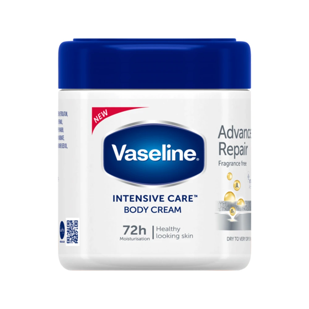 Suitable for: All skin types, especially extremely dry, rough, or sensitive skin. Vaseline Intensive Care Advanced Repair Body Cream is clinically proven to provide deep hydration to restore and soothe very dry, compromised skin. Enriched with micro-droplets of Vaseline Jelly and glycerin, this non-greasy formula penetrates deeply into the skin to deliver immediate and long-lasting moisture. It helps heal dryness from the first use and keeps skin moisturized for up to 48 hours. Benefits: Instantly relieves and deeply moisturizes very dry skin Restores the skin’s natural moisture barrier Provides up to 48 hours of hydration Clinically tested for sensitive skin Non-greasy, fast-absorbing formula Areas of Use: Ideal for the entire body, including hands, elbows, legs, and feet. Not recommended for use around the eyes or on the face. How to Use: Apply liberally to clean, dry skin. Massage gently until fully absorbed. Use daily or as needed, especially after showering or bathing. Warnings: For external use only. Avoid contact with eyes. If contact occurs, rinse thoroughly with water. Stop use if irritation or rash develops. Keep out of reach of children. Store in a cool, dry place. |