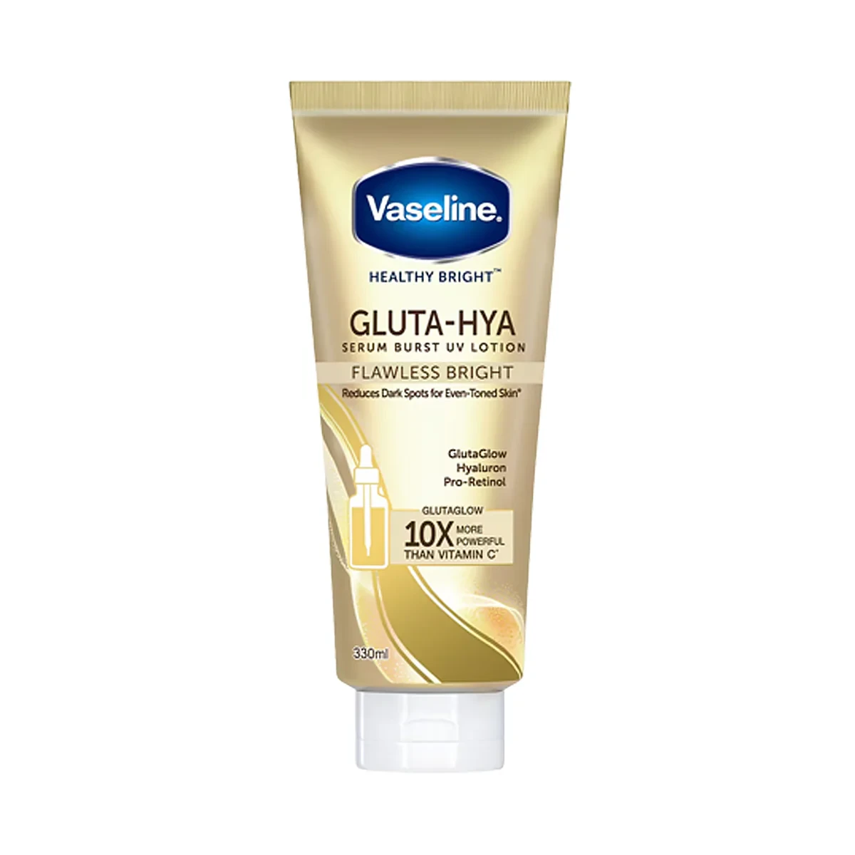 Suitable for: All skin types, including dull and dry skin. Vaseline Serum Burst UV Lotion Gold Radiance is a lightweight, fast-absorbing body lotion with a unique serum-in-lotion texture. It combines micro-droplets of Vaseline Jelly with illuminating gold particles and Vitamin B3 to deeply moisturize and revive dull skin. With added UV protection, it helps prevent sun-induced darkening, leaving your skin glowing, smooth, and protected all day long. Benefits: Deep hydration with a serum-like feel Brightens and evens out skin tone with Vitamin B3 Infused with gold shimmer for a radiant glow Provides UV protection for daily sun defense Non-greasy, fast-absorbing formula Areas of Use: Suitable for full body use – arms, legs, hands, and torso. Not recommended for the face or around the eyes. How to Use: Apply generously to clean, dry skin. Massage until fully absorbed. Use daily in the morning or before sun exposure for best results. Warnings: For external use only. Avoid contact with eyes. Discontinue use if irritation occurs. Store in a cool, dry place. Keep out of reach of children. |